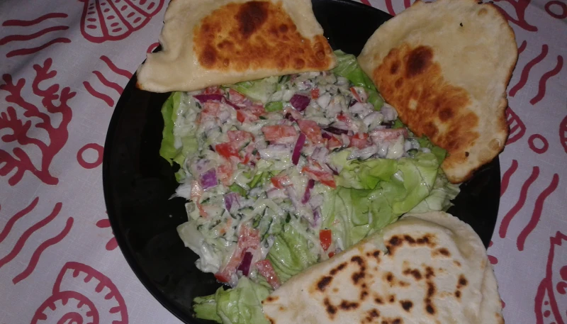 Mettre tout les ingrédients pour les naans sauf le fromage râpé dans un saladier.