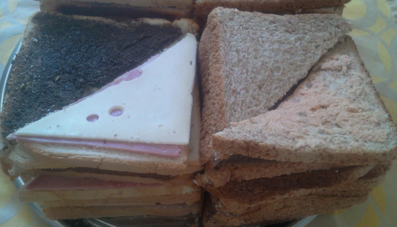 Au moment voulu ,sortir du réfrigérateur et placer les différents sandwichs ensemble sur un plat ou sur 4 assiettes différentes .