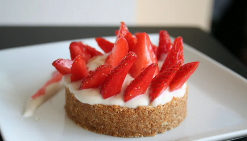 2. Couper les fraises, une moitié d'entre elles en petits bouts (pour les ajouter à la crème) et l'autre moitié, coupées en 2 pour les placer sur le dessus de la tarte.