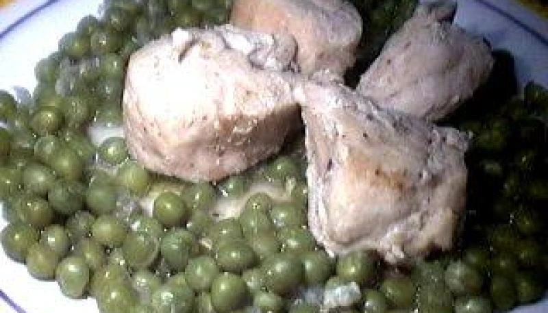 - verser le jus de la viande et les reste de la creme par dessus la viande et le lit de petit pois