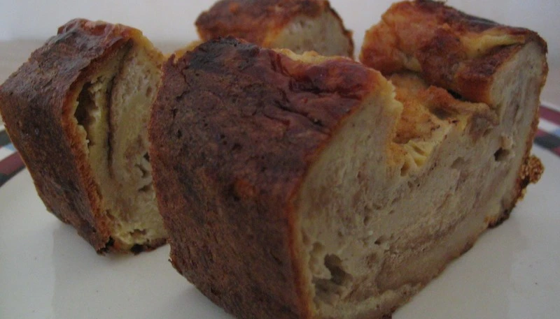 Beurrer un moule. Disposer le pain imbibé dans le plat, puis le recouvrir avec le mélange homogène.