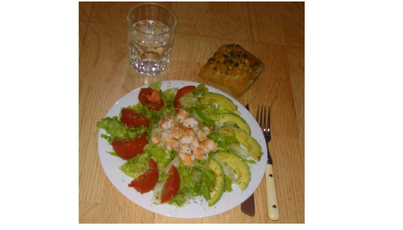 Disposez le tout sur la salade, ajoutez du jus de citron, ou du sel et de l'origan, ou de la vinaigrette... Accompagnez le plat d'un morceau de pain histoire d'avoir un peu de féculents quand même et de ne pas mourir de faim 2 heures après! ;)