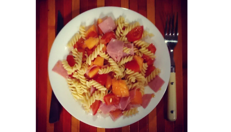Salez (car les pâtes ont été rincées donc si vous les aviez salé elles ont perdu du goût), assaisonnez à votre convenance (je recommande l'origan) et rafraîchissez-vous!