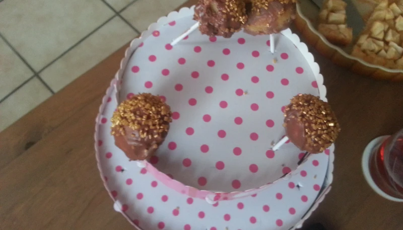 Plongez les boules dans le chocolat noir. Attendez qu'elles durcissent. Refaites la même chose en laissant bien couler l'excédent de chocolat. Puis piquez les pop cakes sur un support (boite à œuf, présentoir à pop cakes, présentoir cartonné ...).