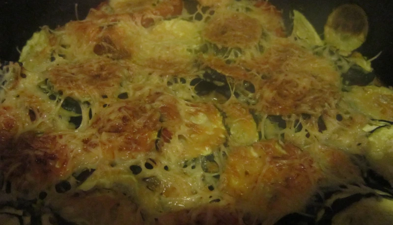 Couvrir sur les légumes, mettre le gruyère et au four 1h minimum.