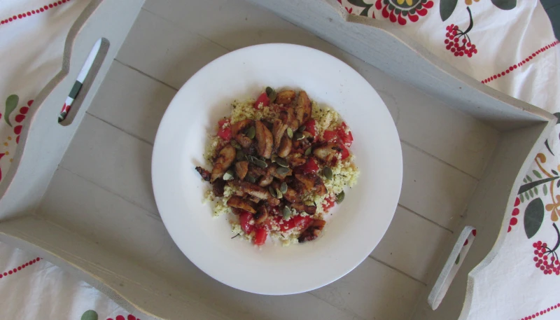 Faire gonfler la semoule avec les raisins dans de l'eau bouillante.