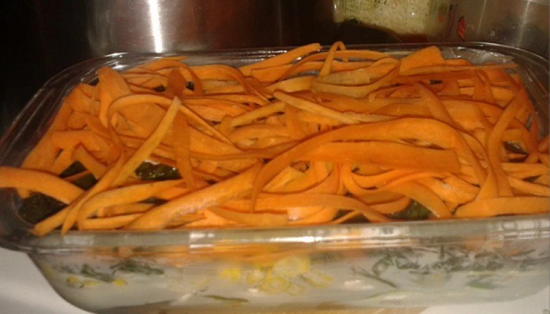 Éplucher puis émincer les champignons. Disposer-les au-dessus des courgettes.