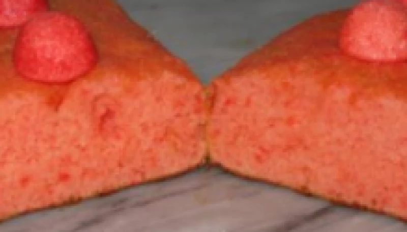 Le gâteau ne doit pas colorer, il doit garder sa belle couleur rose; pour vérifier la cuisson, planter un couteau au centre, celui-ci doit ressortir sec.
