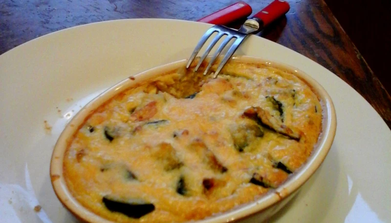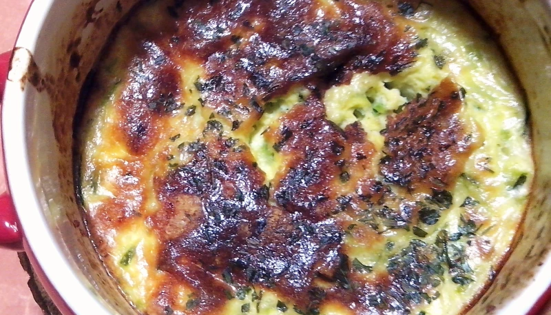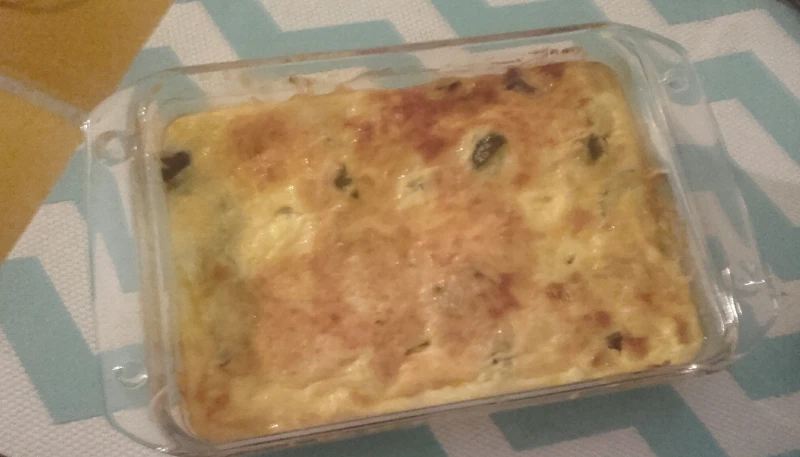 Mélanger la crème fraiche à l'oeuf battu et l'ajouter aux dés de courgette préalablement cuite à l'eau.