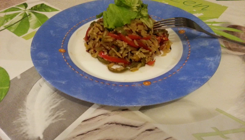 - avec des morceau de tomate ajoutés en même temps que le riz