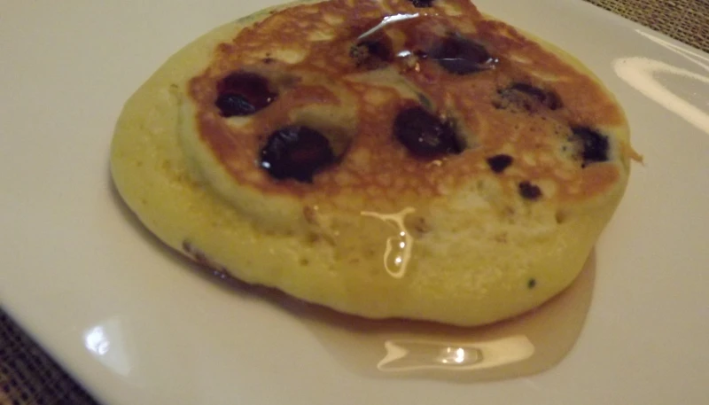 Pour les myrtilles vous pouvez les déposer lorsque votre pancake cuit sur le premier côté, avant de le retourner. Ca permet à la pâte de ne pas devenir violette et donc de garder une jolie couleur dorée.