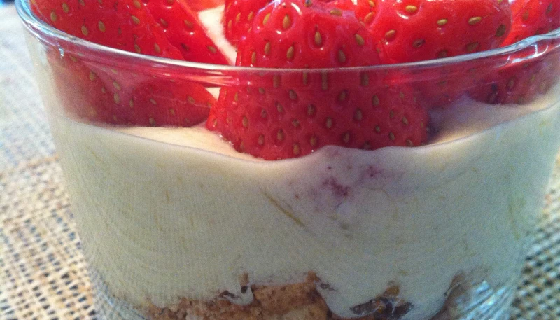 Une fois les cheese-cake prêt découper des fraises et disposez-les sur la crème.