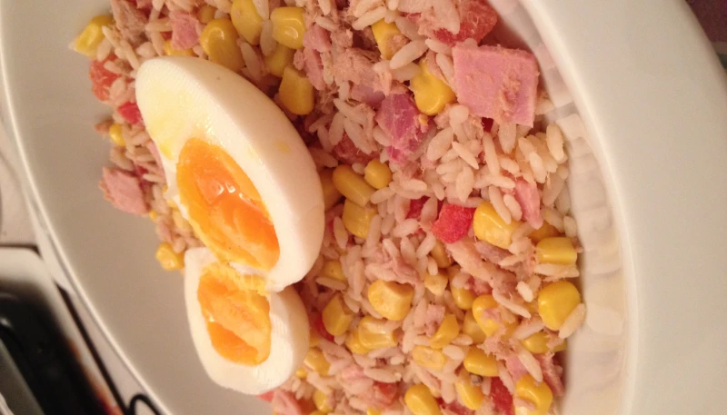 Mélangez tout ça dans une jatte. Ajoutez y le riz.