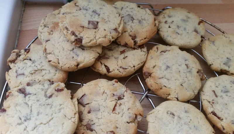 Le secret demeure dans la cuisson: même si vos cookies paraissent pas tout à fait cuits: sortez-les. En effet, ils finiront de cuire à température ambiante sur la grille.