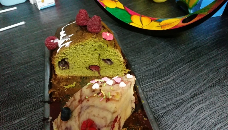 Versez le restant du mélange dans le moule, puis la 2e partie des framboises.