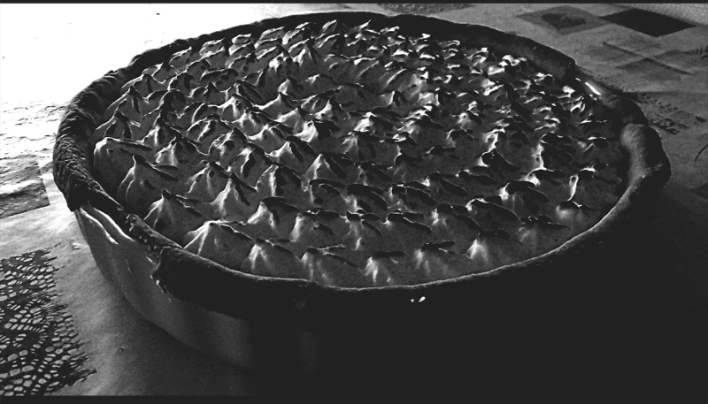 A l'aide d'une poche munie d'une douille cannelée, dresser des petites pointes de meringue sur la tarte puis les brûler à l'aide d'un chalumeau.