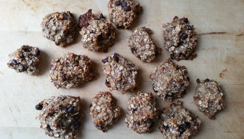 2° Ajoutez 100 g de flocons d'avoine et mélanger. Les bananes servent de liant.