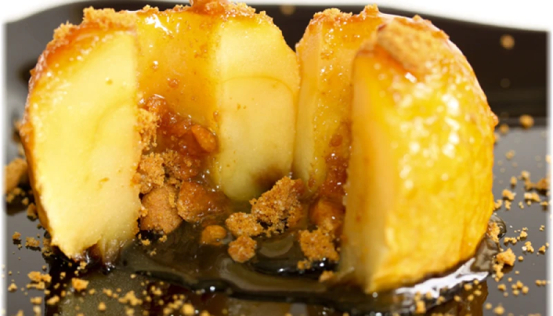 Placez la pomme dans un plat (ou un bol) allant au four avec un fond d'eau pour éviter qu'elle ne caramélise.