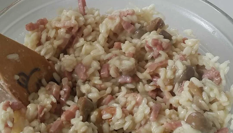 5. Ajouter les lardons et les champignons.