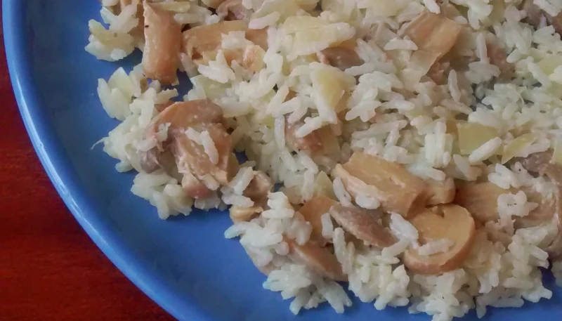 1) Commencez par faire cuire le riz. (Si vous n'avez pas de passoire, achetez du riz en sachet déjà perforé, comme ça il suffit de le sortir de la casserole, ça s'égoutte tout seul, plus rapide, moins de vaisselle.)