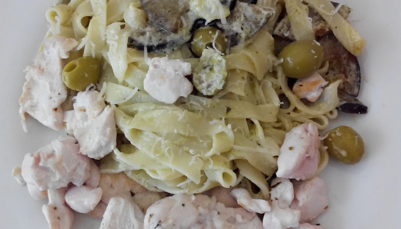 Coupez le poulet en fines tranches et l'ajouter à la cuisson des aubergines, pendant environ 5-6 minutes, à feu moyen.