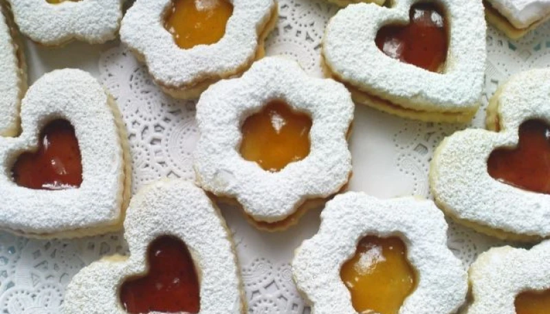 8. laisser refroidir, puis mettre de la confiture sur la partie non troué et la collé avec l'autre partie troué
