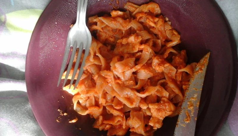 Pendant ce temps, coupez votre saumon fumé en fine lamelles et préparez votre sauce. Pour cela, c'est très simple, il vous suffit de mélanger concentré de tomate et fromage blanc tout en assaisonnant à votre convenance. Réservez. Versez ensuite une cuillère à café d’huile d’olive dans une poêle chaude et faites-y revenir les tagliatelles égouttées.