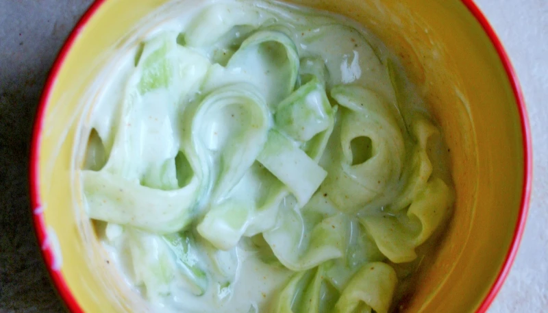 Mettre les "tagliatelles" obtenues dans le bol et y ajouter les yaourts