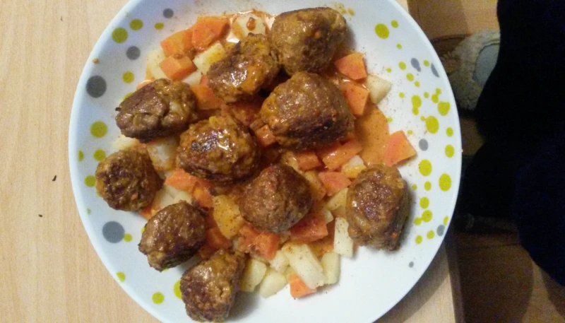 Dans une poêle à feu vif faites revenir les boulettes pendant 4-5 minutes (jusqu'à ce qu'elle soit bien cuite de tous les côtés pour ne pas qu'elles se cassent), puis baisser le feu sur moyen