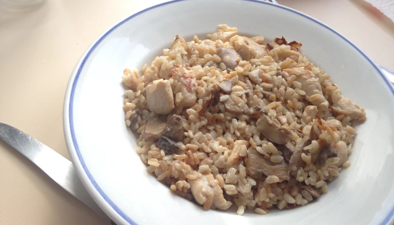 - Couper les champignons, l'oignon et les filets de poulet en petits morceaux.