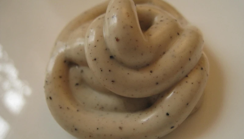 Ajoutez un peu d'eau chaude petit à petit tout en remuant afin d'obtenir une matière onctueuse, ajouterzdu sel ( ou un dé de Kub'or émietté ), puis poivre blanc/noir/moulu à votre guise.