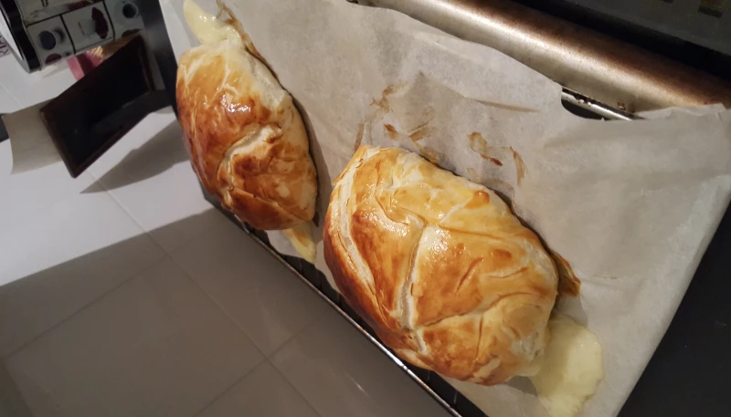 Refermer la pâte sans laisser de jour pour ne pas que le camembert coule et à l'aide d'un pinceau, dorer la pâte avec le jaune d’œuf.