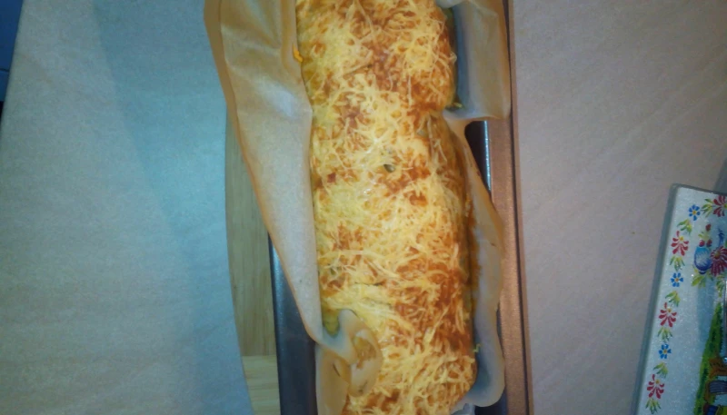 Verser la préparation dans un moule préalablement beurré, et ajouter le reste du gruyère sur le dessus.