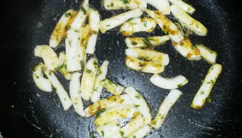 Dans un plat placer les encornets avec de l'huile d'olive et y ajouter le persil et l'ail