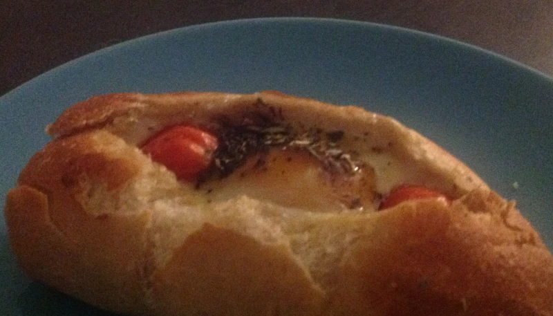 Cassez l’œuf dans un bol puis versez-le dans le pain.