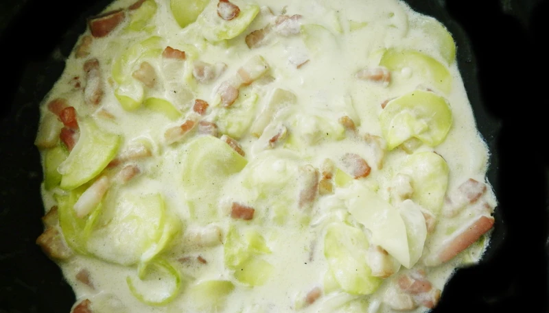 Ajouter les lardons et laisser les cuire *(5 minutes)*.