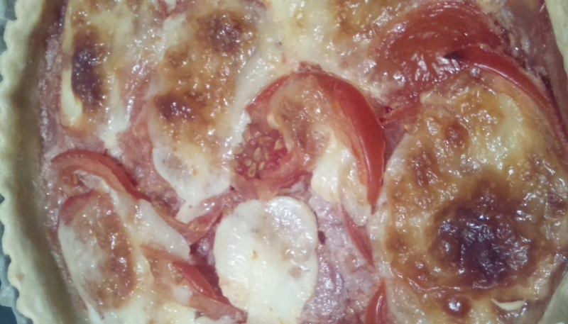 Disposer ensuite en rosace des lamelles de tomate, et par dessus des fines tranches de mozzarella.