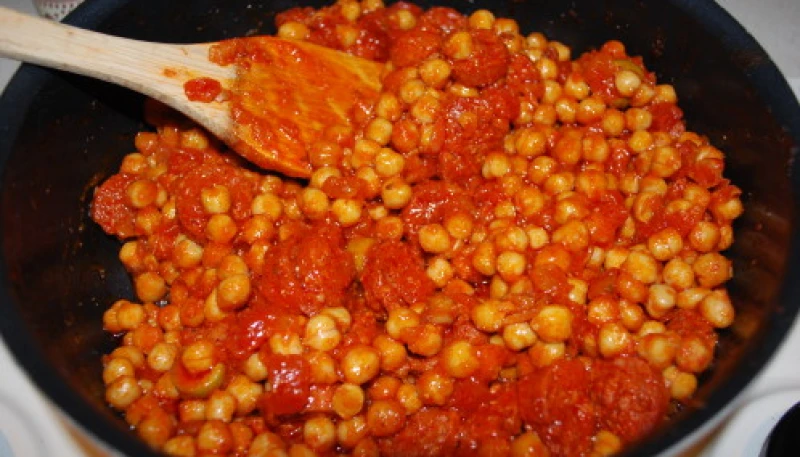 Rajoutez les pois chiches ( rincer) ainsi que la sauce tomate, saler, poivrer.