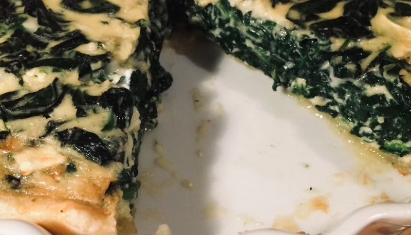 Ensuite, incorporez les épinards, mélangez le tout, ajoutez un peu de thym, salez, poivrez et répartissez la préparation dans le plat à tarte. Enfin, enfournez le tout pendant 30-35 minutes.