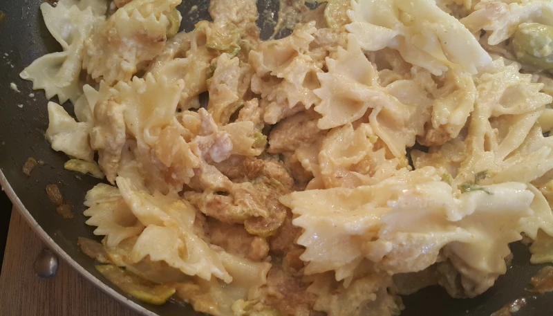 - Quand la courgette a fondu ajouter la crème, du sel et du poivre et mettre le feu un peu plus fort
