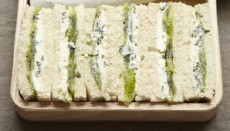 3. Posez les tranches de kiwi en deux épaisseurs et fermez avec une autre tranche de pain. Taillez en fingers et égalisez les côtés.