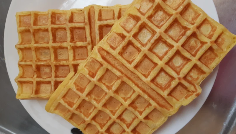 Confectionnez les gaufres dans un gaufrier chauffé en les cuisant 3 à 5 minutes.
