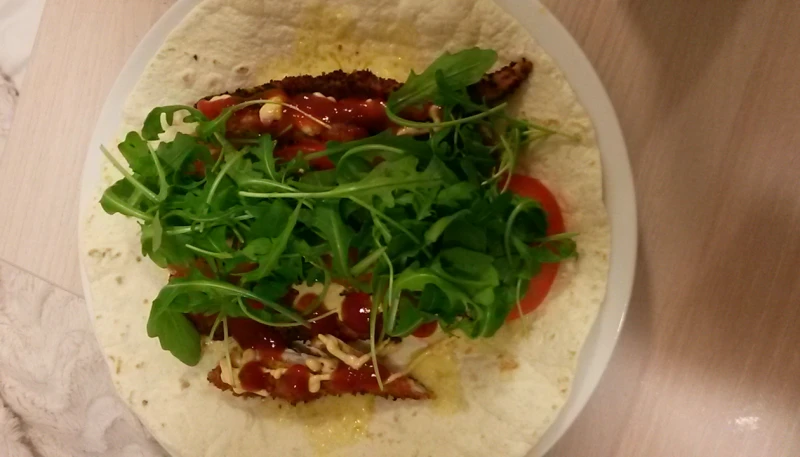 1) mettre des dés de cheddar sur le wrap et laisser fondre au micro-onde 1 petite minute