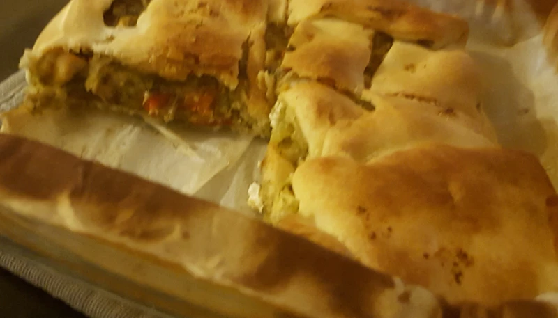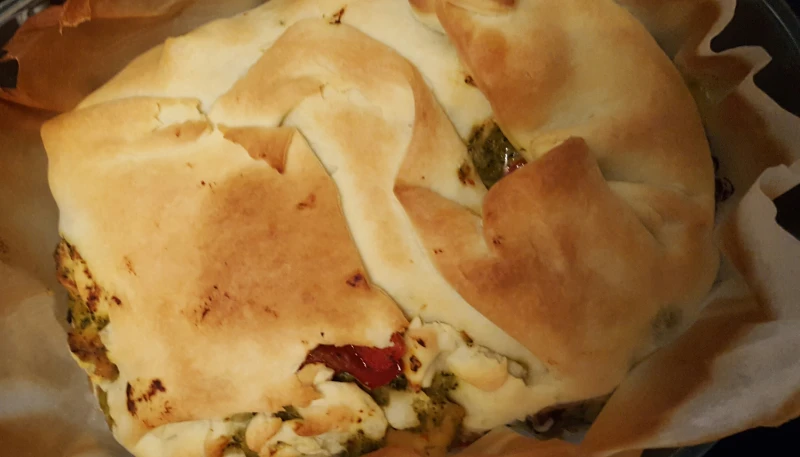 -Mettez le mélange au centre de votre pâte feuilleté, puis refermer la pâte en pliant chaque bord