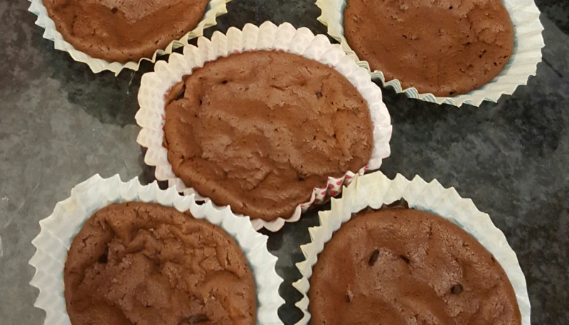 - Incorporer un carré de chocolat par moule pour un coeur fondant au choix, ou les laisser sans pour un coeur coulant au chocolat noir