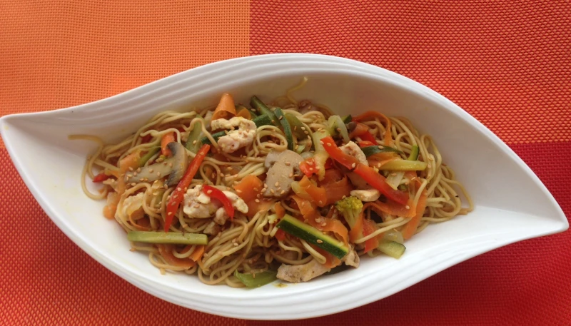 5- Egoutter les nouilles, les rajouter à la farce dans la poêle, mélanger, c'est prêt !