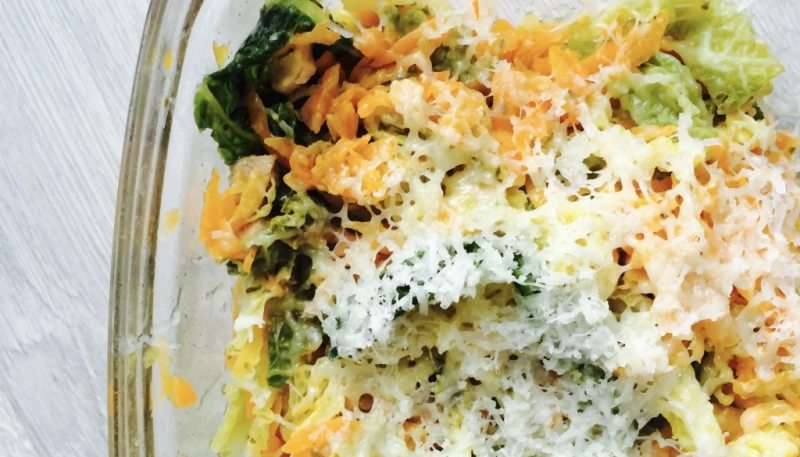 Nettoyez votre chou et coupez le en petit tranche fine. Pelez les carottes et râpez les. Mettez une sauteuse sur feu moyen et faites fondre le beurre (attention il ne doit pas blondir). Faites revenir deux minutes le chou et les carottes dans le beurre en remuant. Puis salez et poivrez) (juste un peu car le pesto et les lardons sale déjà le plat) et mettez un couvercle pendant environ 7 minutes puis ajoutez la protéine (sinon version vegan sa fonctionne tout aussi bien) et le pesto. Mélangez bien. et servez. Personnellement j’aime quand je chou garde un léger côté croquant, mais sinon continuer à pousser un peu la cuisson.