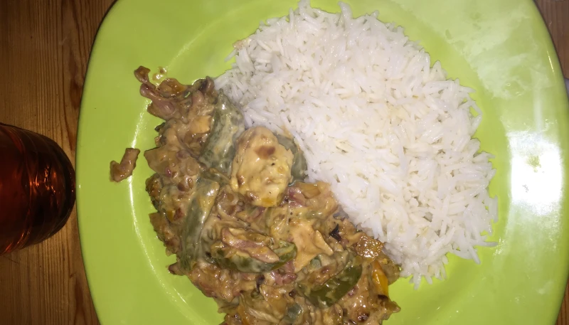 Dès que le poulet est cuit, ajouter la crème fraiche, les morceaux de chorizo, ainsi que la ciboulette hâchée. Laisser mijoter encore quelques minutes et assaisonner suivant le goût.