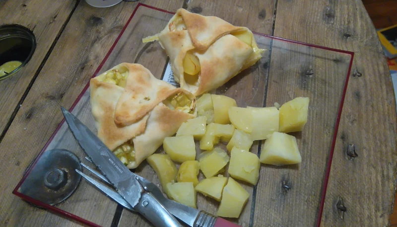 - les pommes de terre ( qui ont besoin d'être cuite à l'avance) se marie bien avec le fromage de chèvre ou/et la crème et le curry.