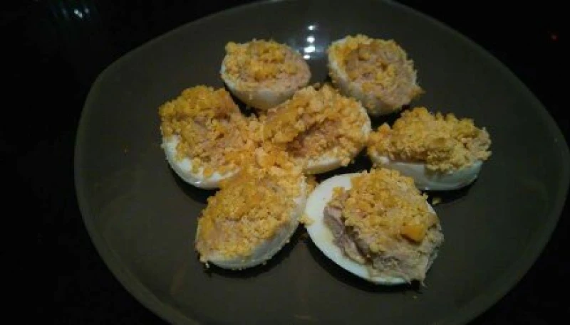 9- Répartir les jaunes émiettés sur les demi-œufs
